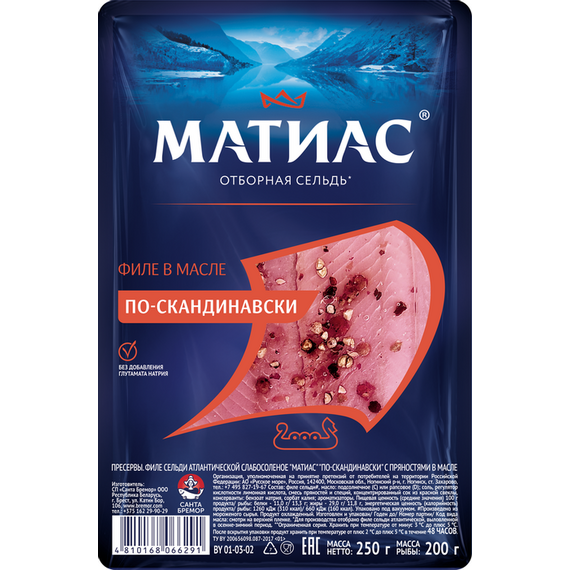Сельдь филе-кусочки "Матиас" отборный ХХL по-скандинавски с клюквой с/б 260 г (607) Бремор