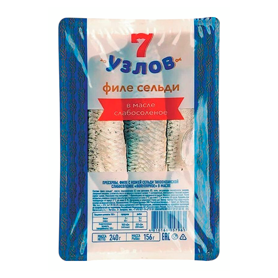 Селедочка 7 Узлов филе с/с в масле с кожей 240г 1/11