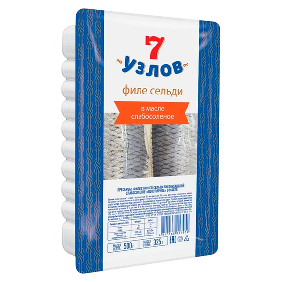 Селедочка 7 Узлов тихоокеанская филе с/с в масле с Кожей 500г (340)