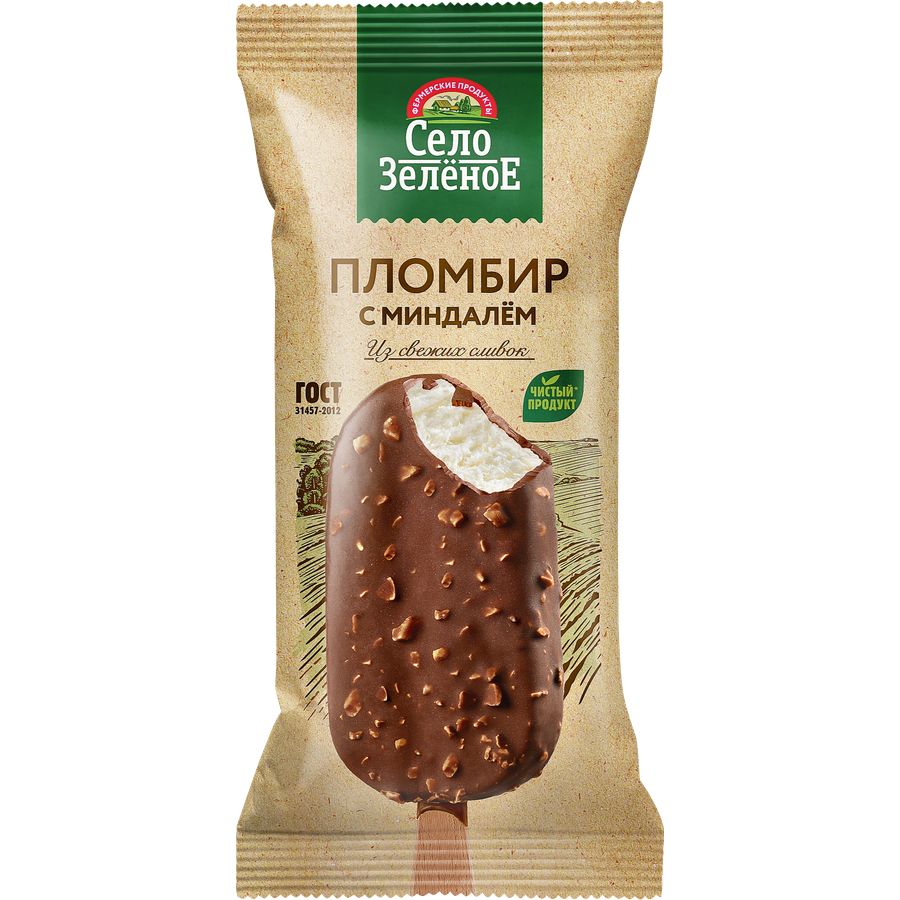 Село Зеленое Эскимо пломбир в шоколадной глазури с миндалем 80г 1/26 /102А/