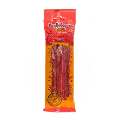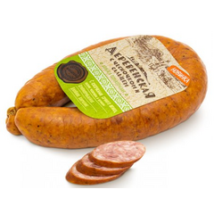 Свинина, филе куриное, шпик, соль, натуральные пряности и их экстракты (паприка, чеснок, мускатный орех, перец красный), соевый белок, нитритно-посолочная смесь (соль, фиксатор окраски: нитрит натрия), декстроза, усилитель вкуса и аромата (Е621),антиокислитель (аскорбиновая кислота, E316), агент...