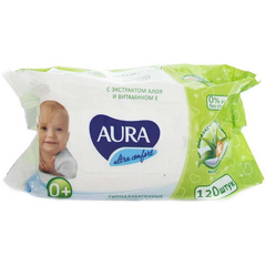 АУРА салф.влажн.детские 120шт Ultra Comfort б/крышки Алоэ и Вит Е *12