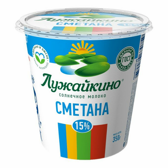 Сметана 15% Лужайкино 350г бзмж 1/12