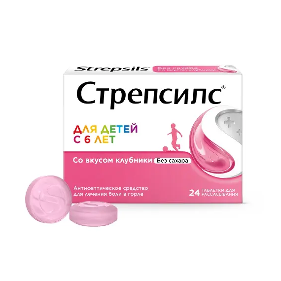 СТРЕПСИЛС ДЕТСКИЙ КЛУБНИКА Б/С таб д/расс N24