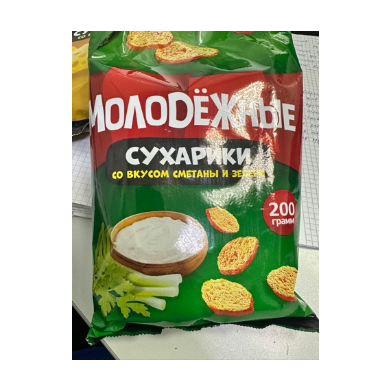 Сухарики Молодежные 200г Сметана/Зелень 1/21
