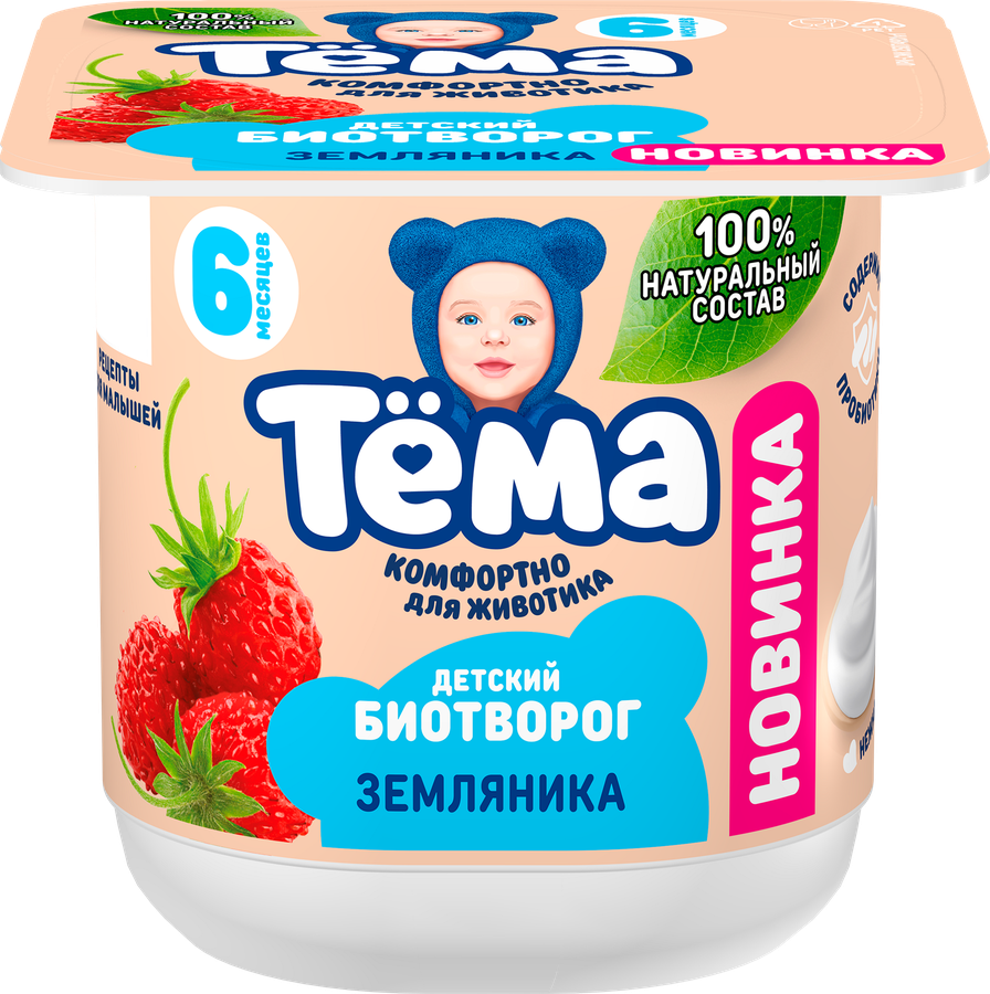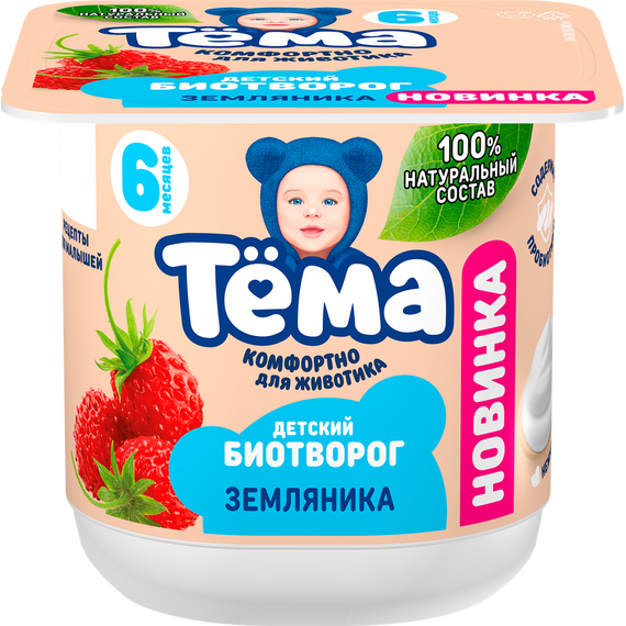 Тёма Биотворог Земляника 4,2% 95г 1/6 БЗМЖ