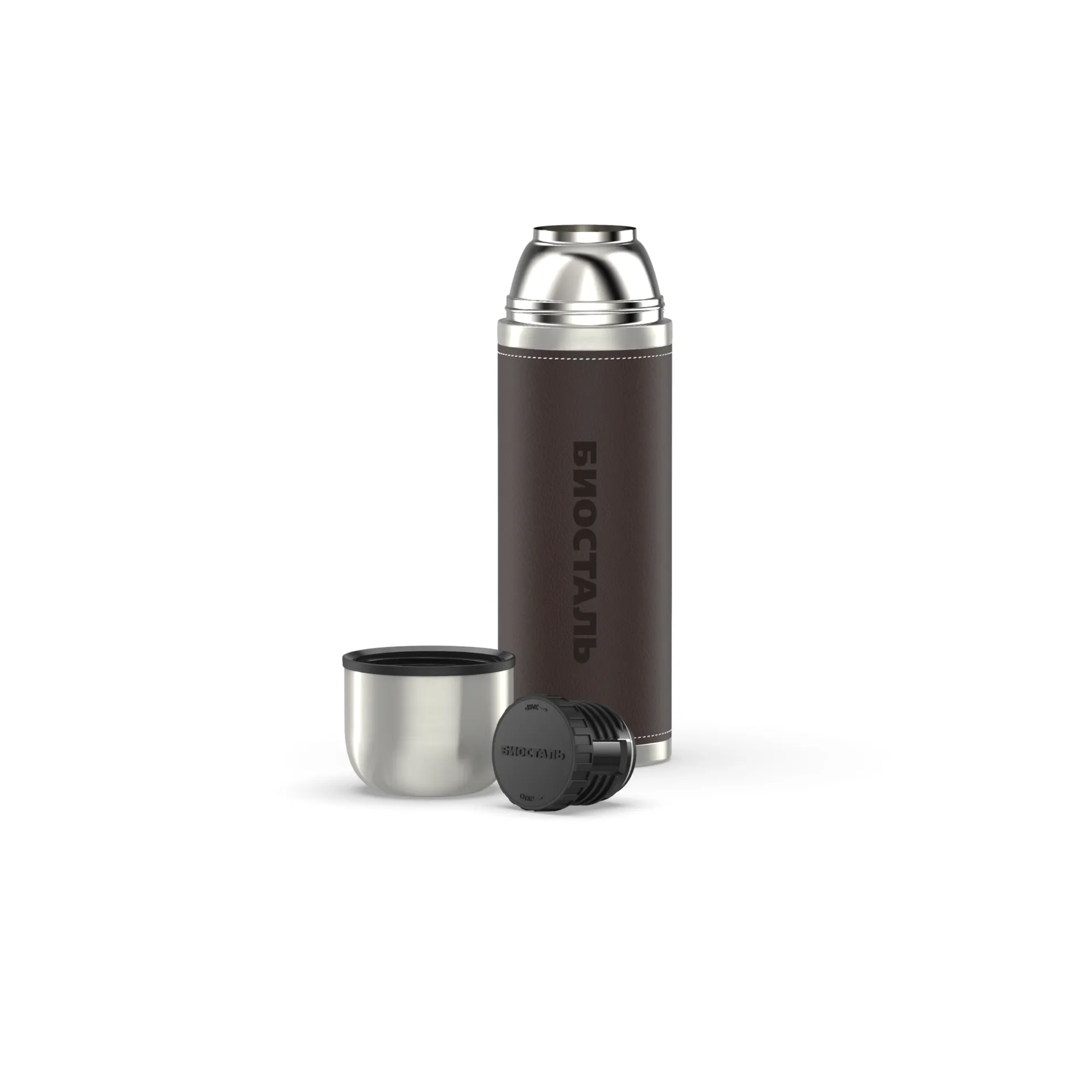 Термос БИОСТАЛЬ ОХОТА узк. горло, кожан. вставка, 2 пробки (1,0л) АРТ. NYP-1000P