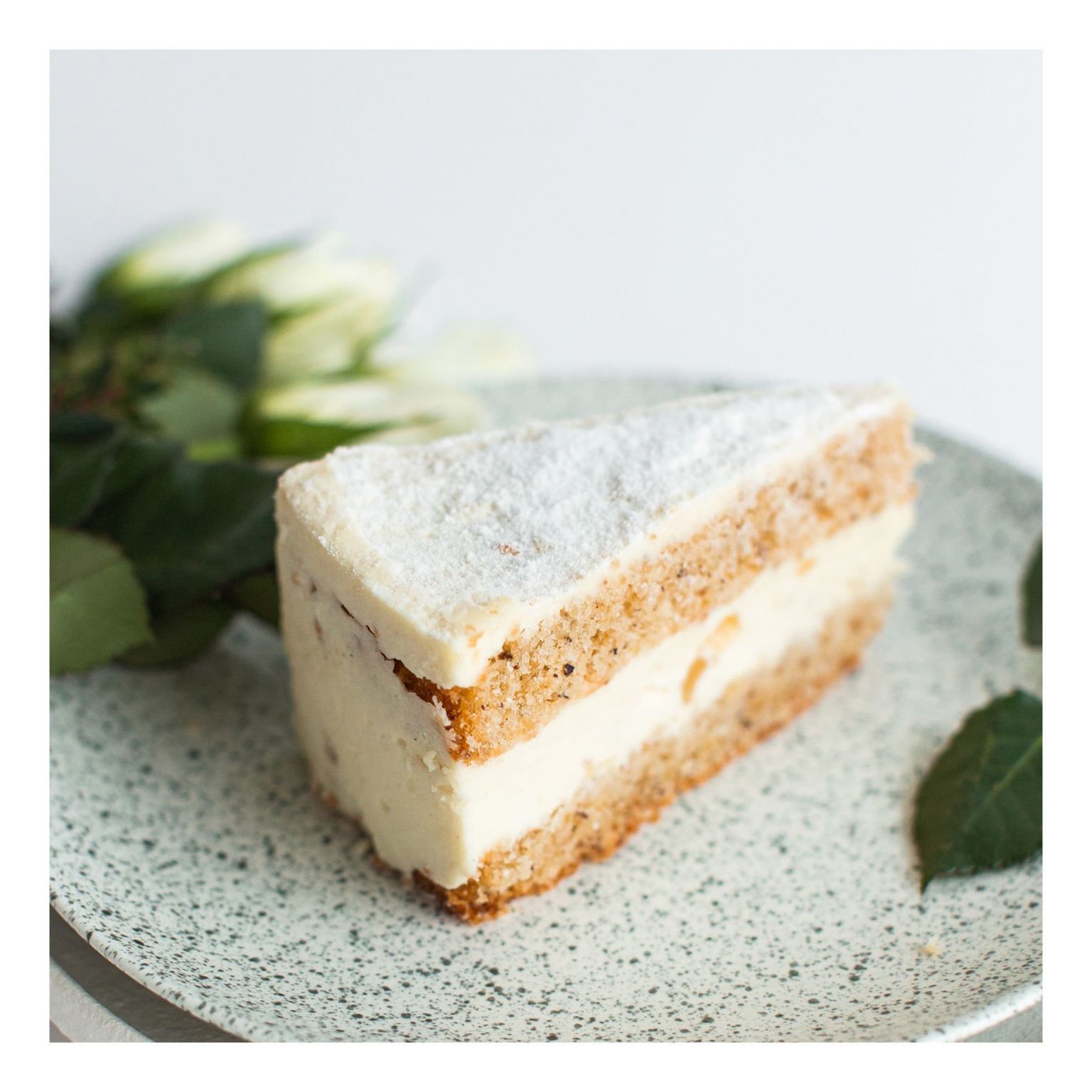 Фундучный бисквит и нежный сливочный крем с сыром рикотта и освежающей грушей.