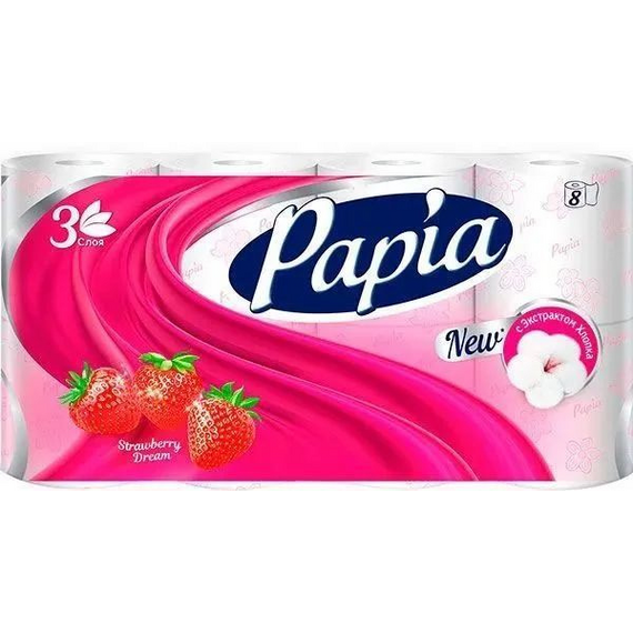 Туалетная бумага Papia 3сл 8шт Strawberry Dream/7