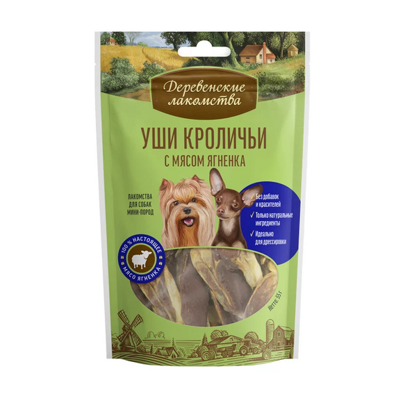 Деревенские Лакомства: уши кроличьи с мясом ягненка для мини-пород, 55г