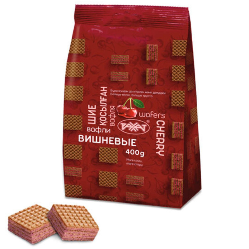 сахар, мука пшеничная фортифицированная, жиры растительные (пальмовое масло), молоко сухое обезжиренное, крахмал кукурузный, какао порошок, порошок яичный, эмульгатор – лецитин соевый, регулятор кислотности – кислота лимонная, соль поваренная, разрыхлители: карбонат аммония, сода пищевая, экстракт вишневый, ароматизатор – идентичный натуральному, красители пищевые: Е120, Е133, Е150d, фермент (протеаза)