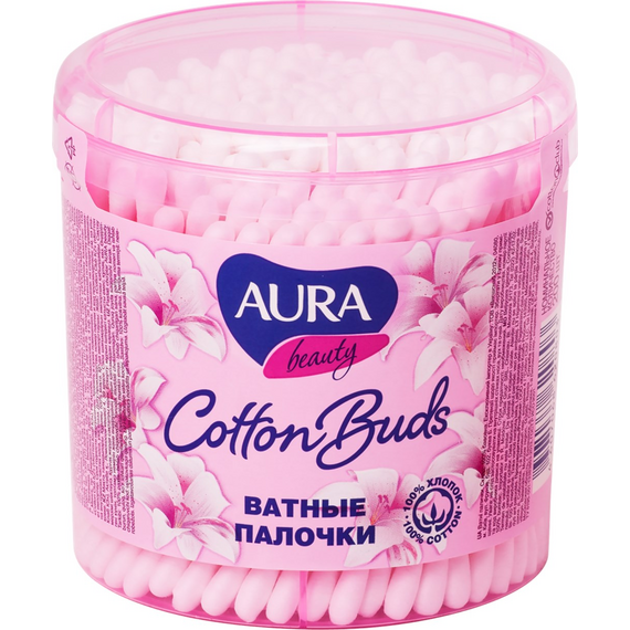 Ватные палочки Аура 200шт.круглый стакан.