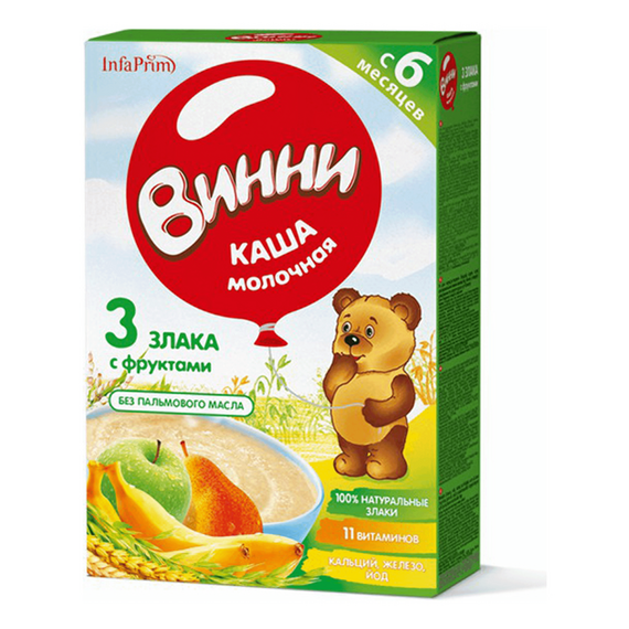 Винни Каша 200г 3 Злака Молоко/Фрукты 1/12
