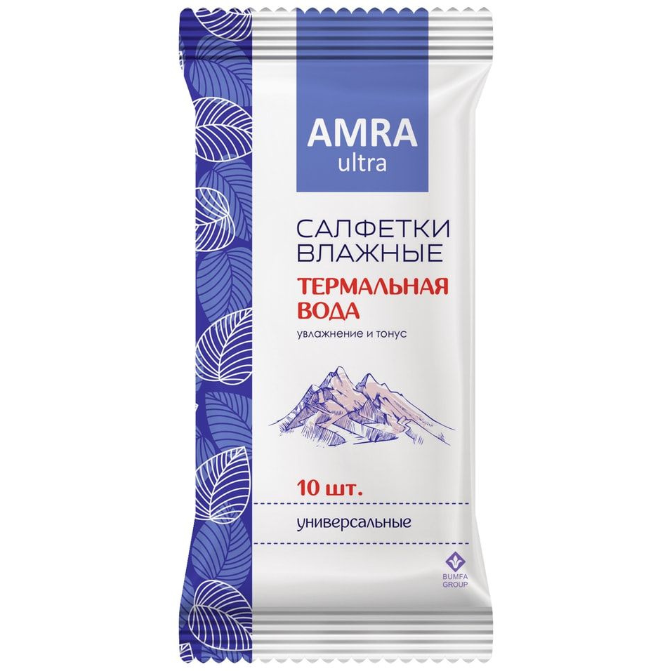 Влажные салфетки AMRA 10шт. с термальной водой. Нежно очистят кожу лица, рук и тела, оставляя после себя ощущение свежести и ухоженности в течение всего дня. Салфетки состоят только из натуральных компонентов, которые бережно ухаживают и заботятся о коже.