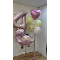 Набор из: • цифра 4 • фигура динозаврик • фольгированное сердце • 5 латексных шаров • 1 латексный шар с пенопластом Наличие уточняйте:)