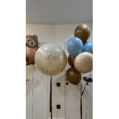Набор из: • «стеклянный» шар с надписью • фигура «Медведь» • 1 фольгированный круг • 6 латексных шаров • баблс ‘12 с перьями