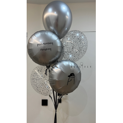 Набор из: • 2 круга фольгированных с надписью • 2 хром серебро • 2 латексных шара с конфетти