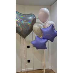 Набор из: • 2 фольгированные звезды • 3 латексных шара • 2 латексных шара даблстаф с блестками Наличие уточняйте:)