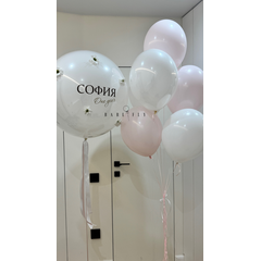 Набор из: • «стеклянный» шар с надписью и хризантемой • 1 латексный шар даблстаф • 5 латексных шаров По наличию уточнять:)