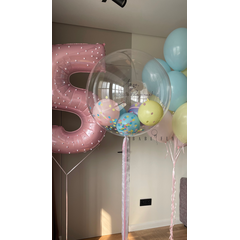 Набор из: • цифра 5 • баблс с шариками внутри и надписью • 9 латексных шаров Наличие уточняйте:)