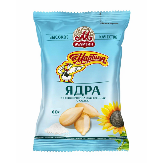 Ядра подсолнечника (очищенные) обжаренные от Мартина Премиум с солью 60г 1/50