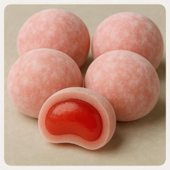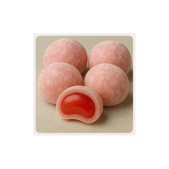 Моти с яблоком — это тёплый, уютный вкус, знакомый с детства, в неожиданно нежной и воздушной форме. Начинка из сладкого японского яблока с тонкой кислинкой обволакивает изнутри мягкое клейкое тесто, которое буквально тает во рту.