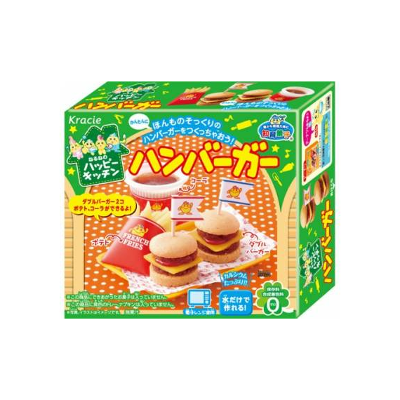 Это увлекательная игра и съедобная вкусность для детей всех возрастов! Вы еще не слышали про них? Достаточно загуглить "японские наборы для детей" и вы найдете тысячу отзывов, видео, картинок и инструкций! Эта японская причуда никого не оставляет равнодушным! В набор входит несколько видов нано-порошков и форм с помощью которых нужно сделать бургеры, картошку и колу - стандартный обед в любом американском предприятии быстрого обслуживания. В Японии не так давно запустили конкурс на самый идеальный бургер, сделанный из набора Popin' Cookin' - миллионы блогеров по всему миру включили камеры и стали лепить свои идеальные бургеры из порошка! Присоединяйтесь и вы!