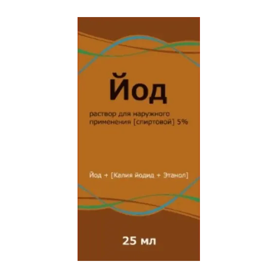 Действующее вещество: йод – 5,0 г.Вспомогательные вещества: калия йодид – 2,0 г; этанол (этиловый спирт) 95 % – 48,4 г; вода очищенная – до 100 мл.
