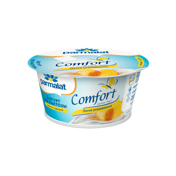 Йогурт 3% Персик/Куркума 130г 1/8 безлактозный Parmalat Comfort