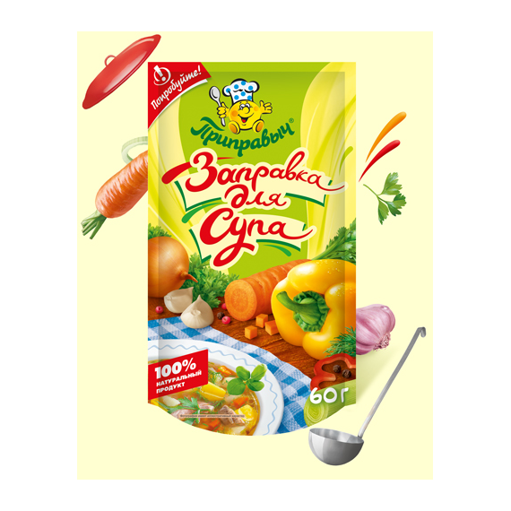 Когда-то суп был центральным событием дня, вся семья собиралась вокруг очага, где в большом горшке кипела дымящаяся похлебка. Нередко все обеденное меню состояло только из одного супа. Само слово «суп» берет начало от латинского «sop», то есть хлеб, политый похлебкой или мясным отваром. Супы представляют собой отвары из мяса, рыбы или грибов, с добавлением овощей, круп, пряностей. Ароматные овощи и смеси пряных трав делают вкус более приятным. Овощи богаты витаминами и микроэлементами, которые полезны для здоровья человека. «Заправка для супа» – это смесь овощей и зелени, высушенных по специальной технологии, бережно сохраняющей для вас полезные свойства, вкус и цвет свежего продукта. С «Заправкой для супа» от Приправыча®, вы можете приготовить любое первое блюдо по своему традиционному рецепту, добавив ее по вкусу за 15-20 мин. до готовности. Заправка сделает ваше блюдо очень аппетитным и по-летнему нарядным с богатым и неповторимым вкусом и ароматом.