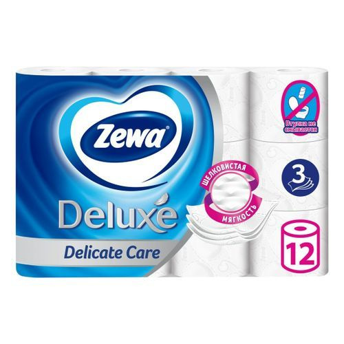 Туалетная бумага Zewa Deluxe 12 рулонов 3 слоя – белая трехслойная туалетная бумага, изготовленная из натуральной целлюлозы от сертифицированных поставщиков. Имеет невероятно мягкую текстуру с супер впитывающими подушечками, созданная для деликатного очищения и особого комфорта всех членов семьи. Бренд Zewa принадлежит шведской компании, являющейся одним из мировых лидеров в области товаров для гигиены и здоровья. Белые листы легко отрываются по линии перфорации, размер каждого листа 9.5*13см, всего в рулоне 145 (+/- 3) листов, общая длина 18.8м. Одобрена европейскими дерматологами. В целлофановой упаковке 12 рулонов.